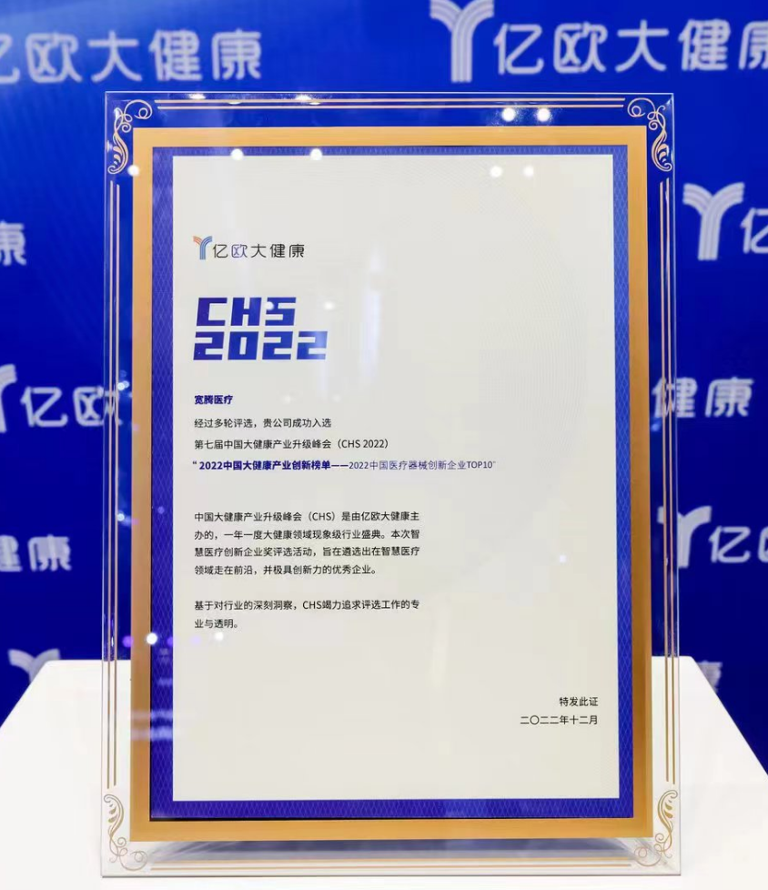 On December 29, the CHS2022 annual event hosted by Yiou Health was held in Beijing. At the ceremony, the list of 2022 China's top 100 digital medical and innovative enterprises, selected by Yiou Think Tank and Yiou Health for several months, was officially announced. Relying on its outstanding performance in the field of medical devices, Quanteng Medical was ranked as the "Top 10 Chinese medical device innovation enterprises in 2022".