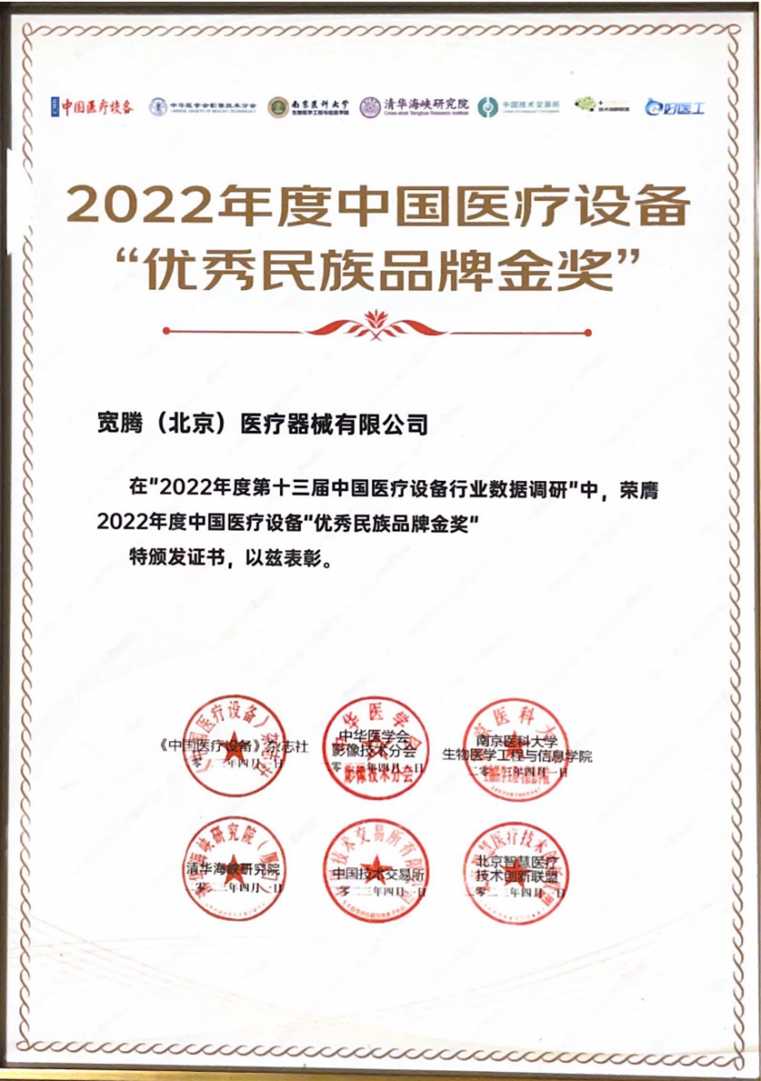 Kuanteng Medical won the "Excellent National Brand Award of Medical Equipment in China in 2022" in the data survey of medical equipment industry in China in 2023, which shone the light of national enterprises and reflected the high recognition of Kuanteng Medical's excellent brand influence, technological innovation strength and after-sales service quality by the industry and users.