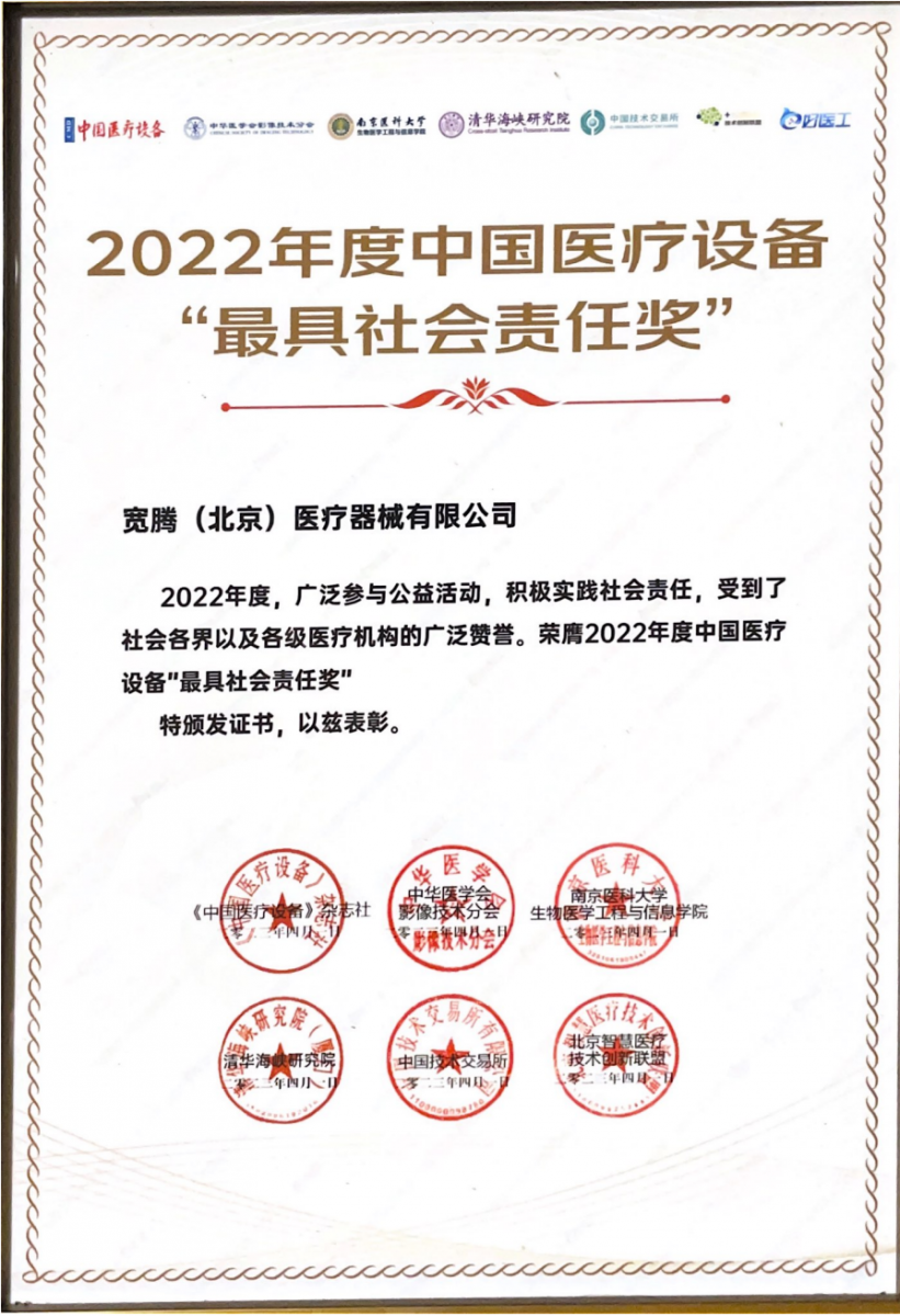 In the context of the "COVID-19 epidemic" last year, during the epidemic period, Kuanteng Medical rushed to help fight the epidemic, donating millions of yuan, and donating several sets of CT and DR equipment for epidemic prevention and control materials. Kuanteng Medical responded to the call of the country, made careful arrangements, and fought side by side with frontline medical workers by donating money and materials to the epidemic areas and establishing an equipment guarantee system at the first time, fully supporting the prevention and control of the epidemic, protecting people's health and contributing to the fight against the epidemic. This time, Kuanteng Medical won the "Most Social Responsibility Award" with its great contribution in the epidemic campaign. This award also reflects the organizers and the public's high recognition of Kuanteng Medical's practice of corporate social responsibility.